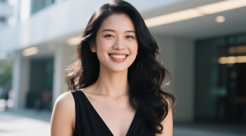 - 복장: 슬림핏 드레스 계열, 단정하고 세련됨